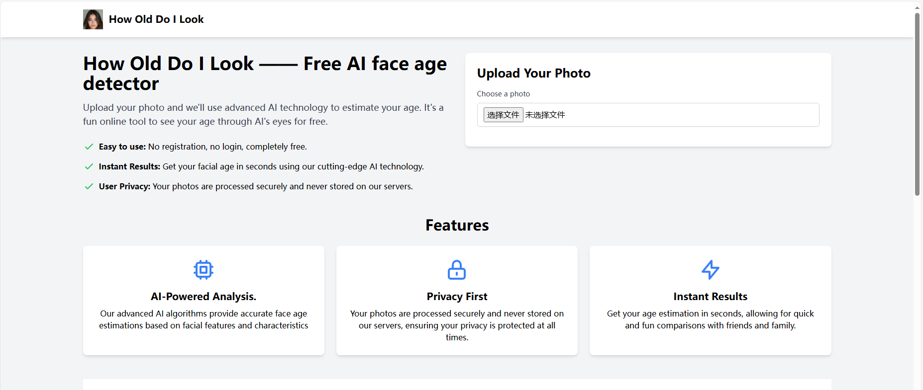 How Old Do I Look 是一个根据照片检测年龄的工具,检测的是面部年龄,也就是“看上去多大”,而不是真实的年龄。