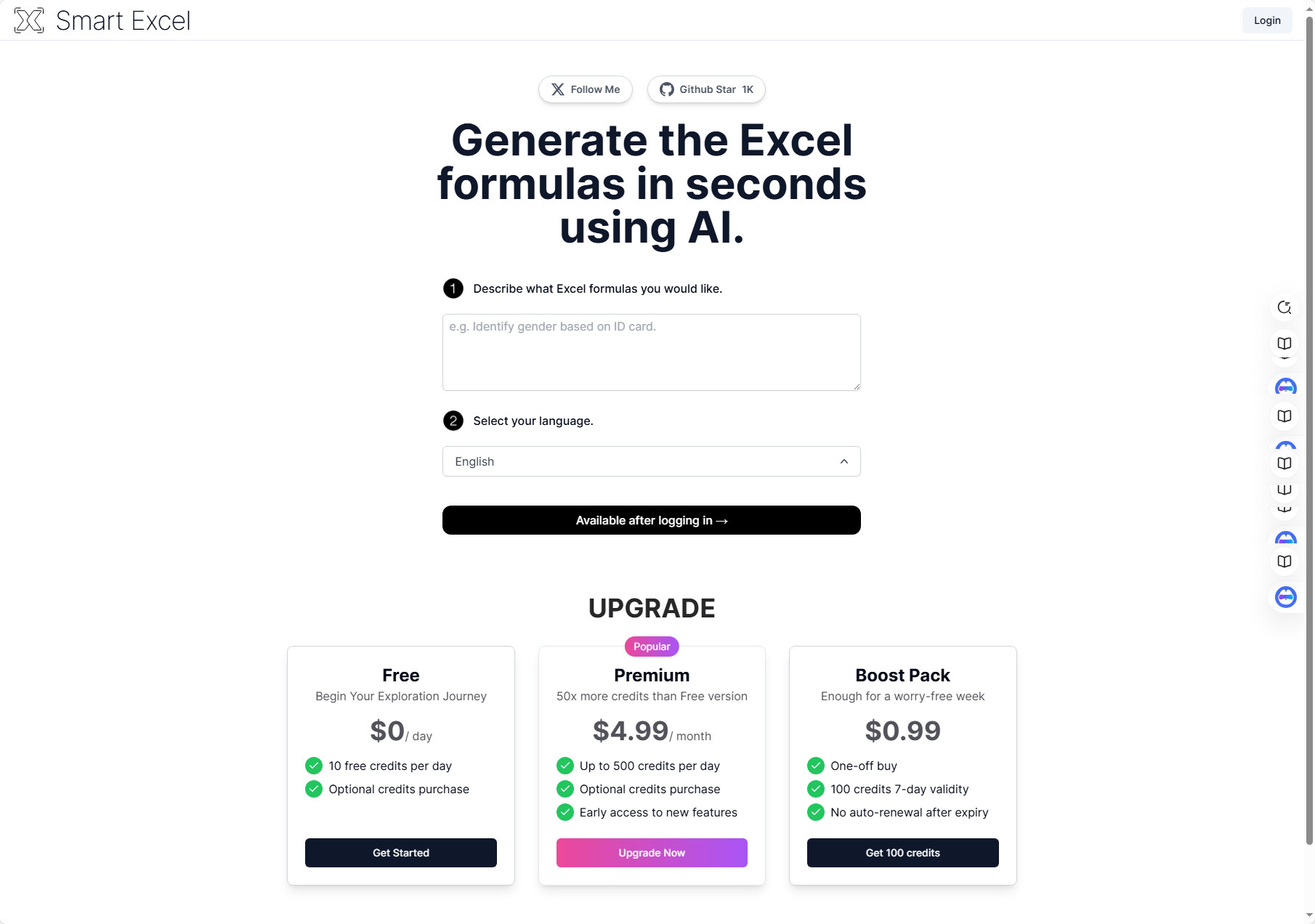 根据自己的使用场景需求生成对应的Excel公式,对不常使用Excel,偶尔需要处理表格的人比较友好。