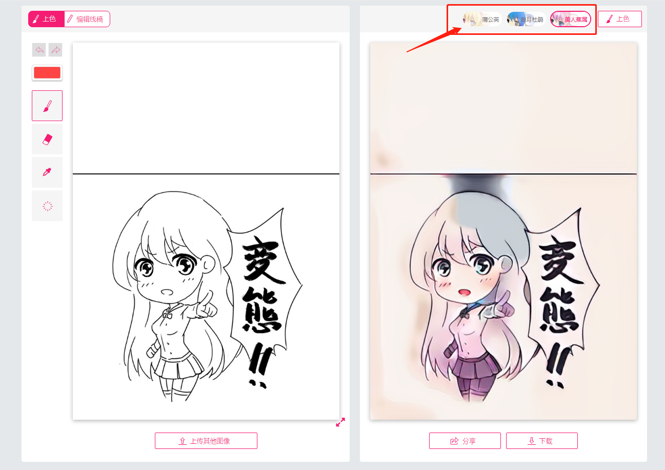 经测试,上色演示效果还可以,需要右上角选择上色风格。基本上能满足简单的上色需求。