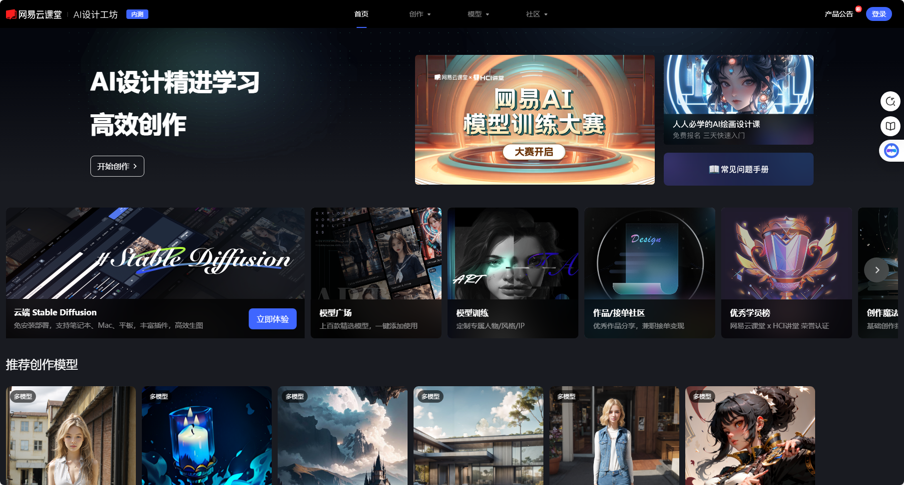 AI设计工坊是网易云课堂旗下的一个AI学习站点,以AI绘画和AI设计为核心。