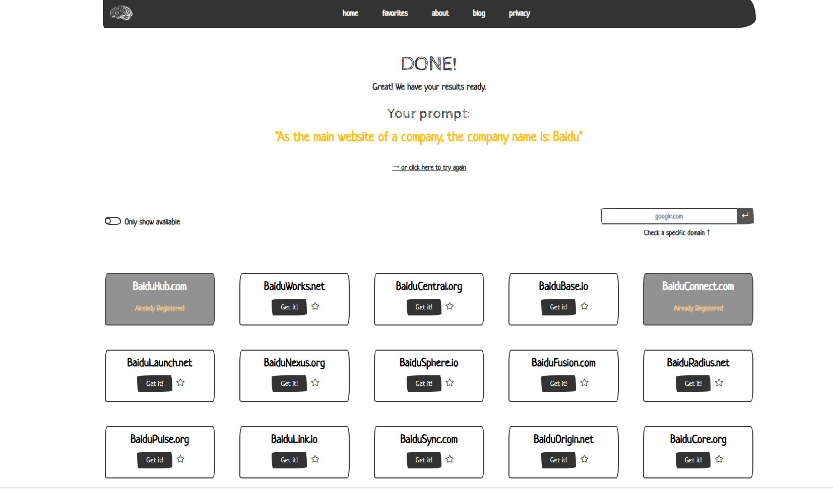 “Namy.ai”是一个根据公司业务自动生成推荐域名的网站,想网站描述自己的公司业务,点击生成即可。